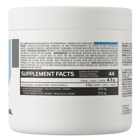 OstroVit A-AKG es un suplemento dietético de alta calidad que contiene L-arginina alfa-cetoglutarato. Se trata de una fórmula de composición sencilla y sabor natural, disponible en un cómodo formato en polvo. Es un producto diseñado para deportistas y personas físicamente activas que desean complementar su dieta con el valioso compuesto.