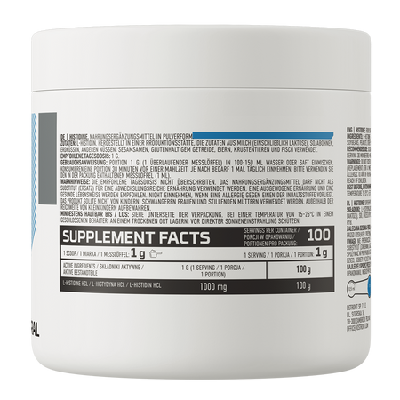 OstroVit Histidina es un complemento alimenticio de alta calidad que proporciona una fuente de L-histidina. Se trata de una fórmula de composición sencilla y sabor natural, disponible en un cómodo formato en polvo. Es un producto creado para consumidores conscientes que desean complementar su dieta diaria con el valioso aminoácido.