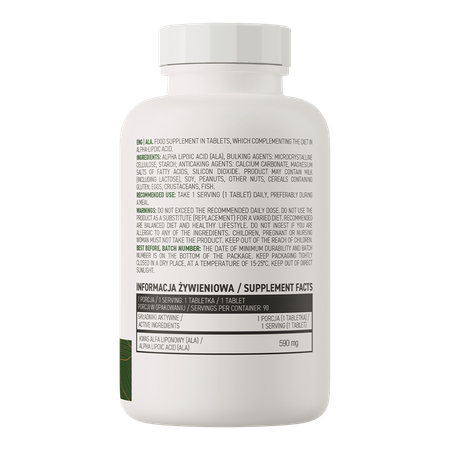 - Fuente de ácido alfa-lipoico - una ración del suplemento dietético aporta al organismo 590 mg de ALA.