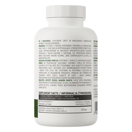 - Contiene extracto de semillas de alholva DER 4:1 - una ración del complemento alimenticio aporta al organismo 370 mg del extracto.