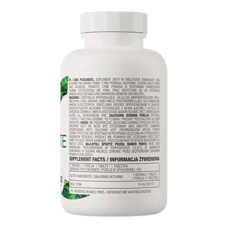 OstroVit Picolinato de Zinc es un complemento alimenticio que proporciona una fuente de zinc en una forma altamente biodisponible: el picolinato de zinc. Se trata de un preparado en forma de comprimidos fáciles de tragar, diseñado para las personas que desean complementar su dieta diaria con el valioso micronutriente.