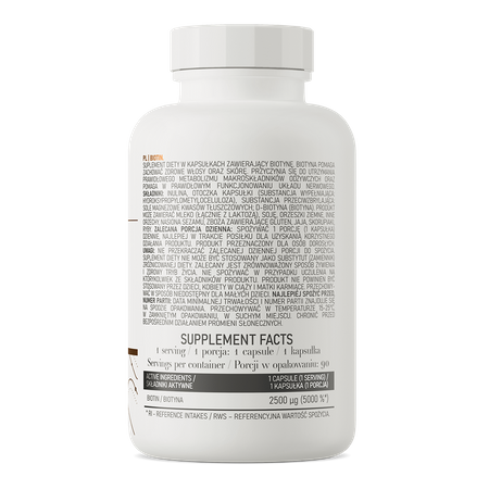 OstroVit Biotina VEGE es un complemento alimenticio de alta calidad que proporciona una fuente de biotina. Se trata de un preparado vegano, disponible en forma de cápsulas fáciles de tragar, diseñado para personas que desean tener un aspecto sano y bello.