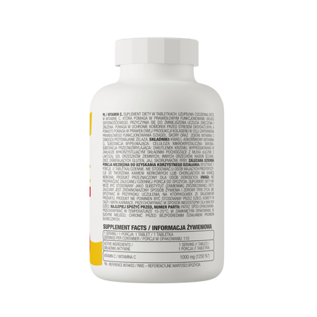 OstroVit Vitamina C es un complemento alimenticio que proporciona una valiosa fuente de ácido L-ascórbico. Es un preparado disponible en forma de comprimidos fáciles de tragar, que se ha desarrollado para deportistas y personas con una mayor necesidad de vitamina C.