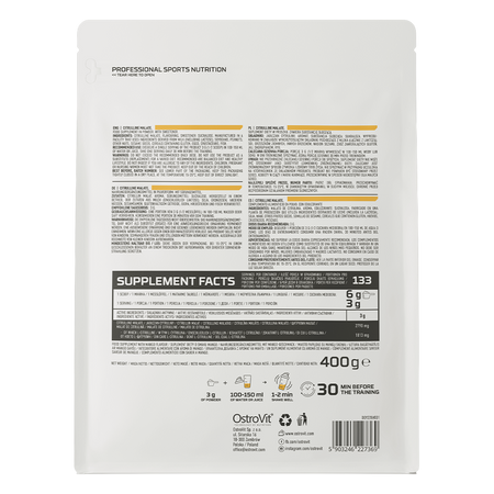 OstroVit utiliza malato de citrulina, una forma del compuesto que se distingue por su excelente biodisponibilidad y ergogenicidad, lo que repercute positivamente en la calidad del preparado y en la eficacia de la suplementación.