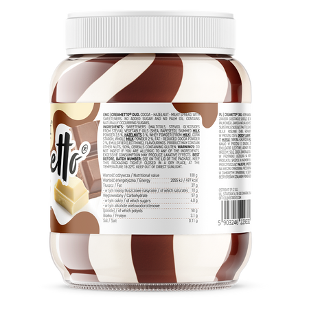 OstroVit Creametto Crema de Leche y Nueces 350 g es una excelente opción para las personas que adoran los dulces y al mismo tiempo desean evitar las consecuencias negativas asociadas a su consumo. Entre los ingredientes de OstroVit Creametto 350 g encontrará m.en. grasas vegetales y carbohidratos saludables, y el edulcorante es maltitol, que contiene la mitad de calorías que el azúcar y tiene un índice glucémico bajo.