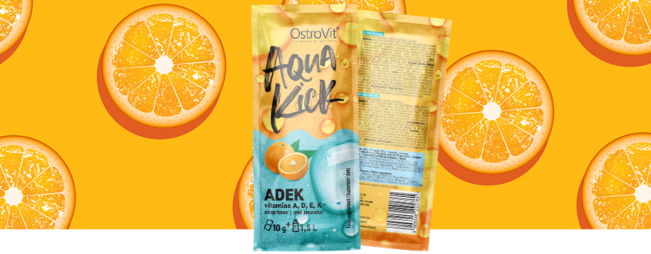 OstroVit Aqua Kick ADEK es un complemento alimenticio que proporciona una fuente de vitaminas liposolubles como la vitamina A, la vitamina D y las vitaminas E y K. Se trata de un preparado moderno con un sabor único a naranja, que se presenta en una práctica bolsita. Se trata de un producto diseñado para personas físicamente activas, que permite un aporte ininterrumpido de valiosos micronutrientes.