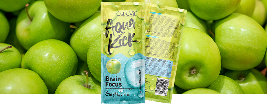 OstroVit Aqua Kick Brain Focus es un suplemento dietético completo que contiene inositol, bicinato de colina, extracto de raíz de ashwagandha, así como vitamina B6 y B12. Se trata de un preparado con un delicioso sabor a manzana verde, disponible en bolsitas con un polvo hidrosoluble. Es un producto diseñado para personas preocupadas por el buen funcionamiento del cerebro y el rendimiento cognitivo.
