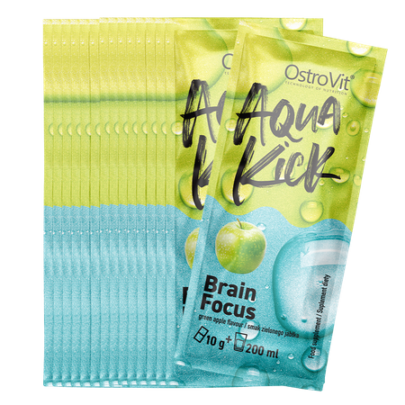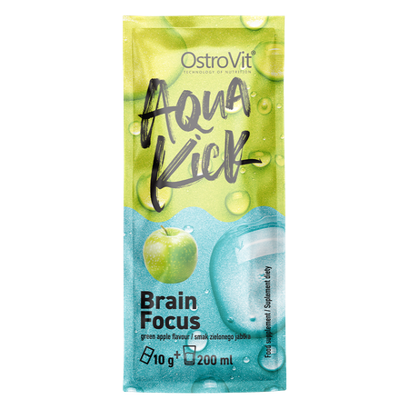 OstroVit Aqua Kick Brain Focus es un suplemento dietético completo que contiene inositol, bitartrato de colina, extracto de raíz de ashwagandha y vitaminas B6 y B12. Es un preparado con un delicioso sabor a manzana verde, disponible en forma de sobre con polvo soluble en agua. Es un producto creado para personas que se preocupan por el buen funcionamiento del cerebro y el rendimiento cognitivo.