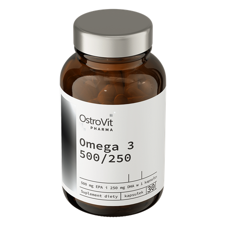 OstroVit Pharma Omega 3 500/250 es un suplemento dietético de alta calidad que es una fuente de aceite de pescado, que contiene ácido eicosapentaenoico y ácido docosahexaenoico. Este producto de la línea de élite de OstroVit Pharma, disponible en forma de cápsulas fáciles de tragar, está diseñado para consumidores conscientes que desean complementar su dieta con valiosos compuestos.