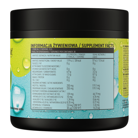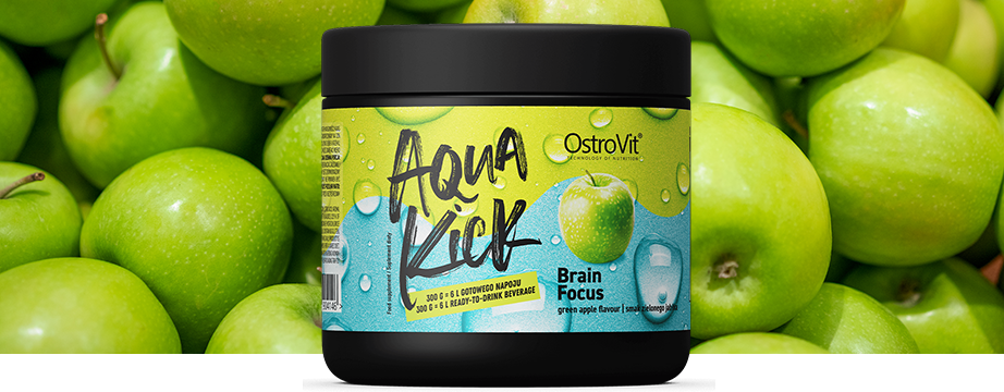 OstroVit Aqua Kick Brain Focus es un suplemento dietético completo que contiene inositol, bicinato de colina, extracto de raíz de ashwagandha, así como vitamina B6 y B12. Se trata de un preparado con un delicioso sabor a manzana verde, disponible en un cómodo formato en polvo. Es un producto diseñado para personas preocupadas por el buen funcionamiento del cerebro y el rendimiento cognitivo.