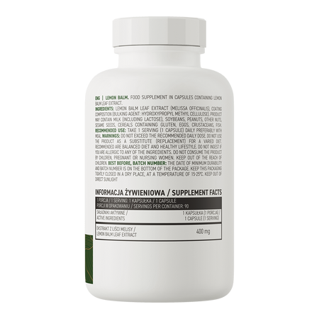 OstroVit Hoja de Melisa VEGE es un complemento alimenticio de alta calidad que contiene extracto de hoja de Melissa DER 4:1. Es un preparado vegano, disponible en cápsulas fáciles de tragar. Es un producto creado para personas que desean complementar su dieta diaria con ingredientes naturales y valiosos.