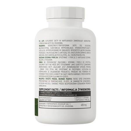 OstroVit ATP VEGE es un complemento alimenticio de alta calidad que contiene adenosina 5′-trifosfato en forma de sal disódica. Es un preparado vegano disponible en cápsulas fáciles de tragar, diseñado para deportistas y personas físicamente activas.