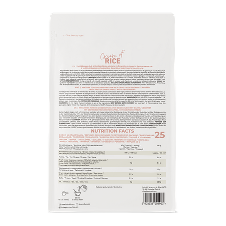 - Rica fuente de hidratos de carbono - una ración del suplemento dietético aporta al organismo aprox. 31 g de hidratos de carbono.