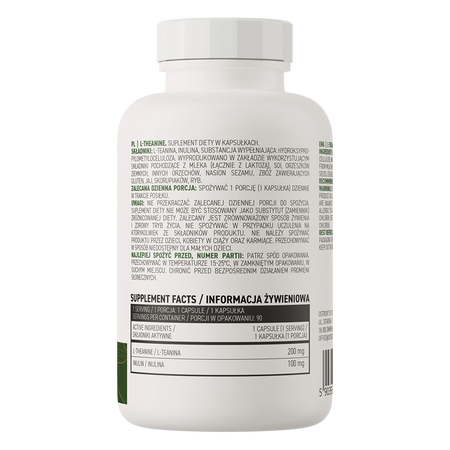 OstroVit L-Teanina VEGE es un complemento alimenticio de alta calidad que proporciona una fuente de L-teanina e inulina. Se trata de un preparado vegano, disponible en forma de cápsulas fáciles de tragar, diseñado para personas preocupadas por mantener la función cognitiva en un nivel adecuado.