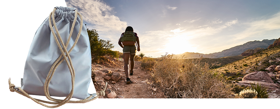 La bolsa consta de dos capas de material: la capa exterior es más gruesa e impermeable y la interior es más fina y tiene un bolsillo con cremallera. Los cordones son de algodón, suaves pero resistentes. La bolsa está disponible en dos colores: gris y azul marino. La bolsa puede lavarse a baja temperatura.