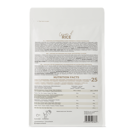 - Forma práctica - el producto está disponible en forma de polvo para un suministro de gachas sin problemas: basta con disolver una porción en agua hirviendo y listo!