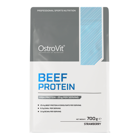 OstroVit Beef Protein es un suplemento dietético de alta calidad que proporciona una fuente de proteínas en forma de hidrolizado de proteínas de vacuno, así como los valiosos aminoácidos L-glutamina y L-arginina. Es una fórmula disponible en polvo, en tres deliciosos sabores, que no contiene azúcares añadidos. Un producto diseñado para atletas y personas físicamente activas que necesitan complementar su dieta con ingredientes valiosos, tanto durante el período de construcción de masa muscular como durante la reducción del tejido adiposo.