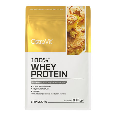 OstroVit 100% Whey Protein es un suplemento dietético que es una fuente de concentrado de proteína de suero, que contiene hasta un 70% de proteína de alta calidad. Es una fórmula que aporta al organismo aminoácidos de cadena ramificada BCAA, así como aminoácidos esenciales EAA. Se trata de un producto bajo en grasas, disponible en forma de polvo en una variedad de sabores, que ha sido desarrollado para deportistas y personas que desean complementar su dieta diaria con un valioso macronutriente.