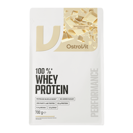 OstroVit 100% Whey Protein es un suplemento dietético que es una fuente de concentrado de proteína de suero, que contiene hasta un 73% de proteína de alta calidad. Es una fórmula que aporta al organismo aminoácidos de cadena ramificada BCAA, así como aminoácidos esenciales EAA. Se trata de un producto bajo en grasas, disponible en forma de polvo en una variedad de sabores, que ha sido desarrollado para deportistas y personas que desean complementar su dieta diaria con un valioso macronutriente.