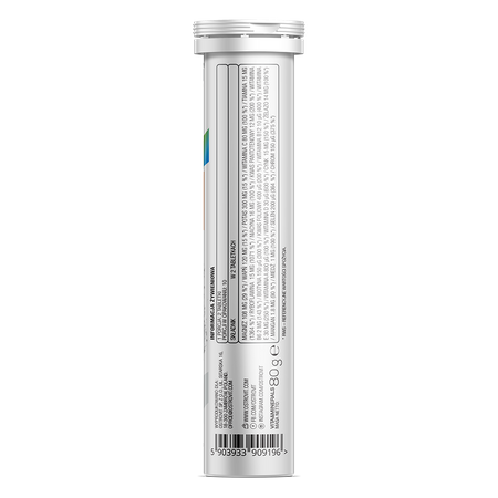 - Forma práctica - el preparado está disponible en forma de comprimidos efervescentes para garantizar un suministro sin problemas del suplemento dietético y es ideal para las personas que tienen dificultades para tragar los comprimidos tradicionales.