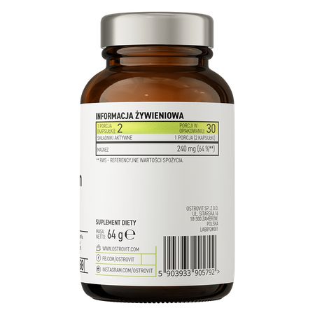 OstroVit Pharma Citrato de Magnesio es un suplemento dietético de alta calidad que proporciona una fuente de magnesio, en la forma altamente biodisponible de citrato de magnesio. Se trata de un producto de la línea de élite de OstroVit Pharma, disponible en forma de cápsulas fáciles de tragar, creado para consumidores conscientes que desean complementar su dieta diaria con el valioso micronutriente.