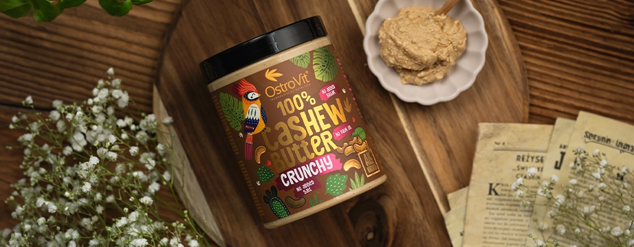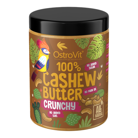 OstroVit 100% Mantequilla de Anacardos es un producto excelente y único, creado para los gourmets más exigentes, pero también para las personas que cuidan una figura esbelta, hacen deporte y para quienes limitan el exceso perjudicial de sal o azúcar en su dieta. El sabor profundo y pleno de los anacardos combina a la perfección como guarnición dulce y salada. Es una auténtica bomba de valiosos ácidos grasos, proteínas y minerales. Profundidad de sabor, 100% de satisfacción y garantía de la más alta calidad - OstroVit 100% Cashew Butter.