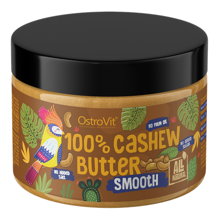OstroVit 100% Mantequilla de Anacardos es un producto excelente y único, creado para los gourmets más exigentes, pero también para las personas que cuidan una figura esbelta, hacen deporte y para quienes limitan el exceso perjudicial de sal o azúcar en su dieta. El sabor profundo y pleno de los anacardos combina a la perfección como guarnición dulce y salada. Es una auténtica bomba de valiosos ácidos grasos, proteínas y minerales. Profundidad de sabor, 100% de satisfacción y garantía de la más alta calidad - OstroVit 100% Crema de Anacardos.