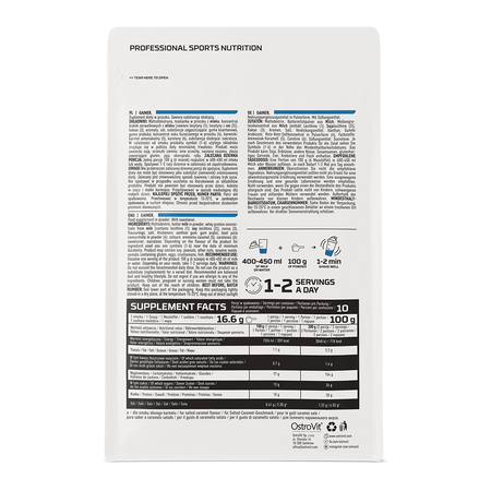 OstroVit utiliza maltodextrina, un compuesto obtenido a través de la hidrólisis enzimática del almidón, que es fácilmente digerible y se caracteriza por una rápida asimilación en el cuerpo humano, así como concentrado de proteína de suero, una fuente de proteína animal caracterizada por una buena solubilidad, una excelente asimilación y un corto tiempo de absorción, lo que tiene un efecto positivo en la calidad y la eficacia de la suplementación.