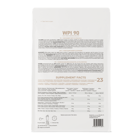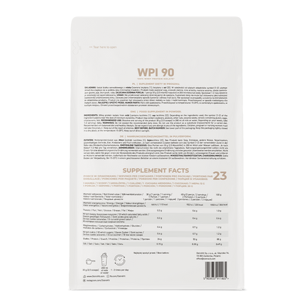 OstroVit WPI 90 es suplemento proteico, que contiene aislado de proteína de suero. Es una fuente de proteínas que contribuye al crecimiento muscular y también ayuda a mantener la masa muscular. Además, las proteínas ayudan a mantener los huesos sanos, por lo que son un macronutriente importante en la dieta diaria.