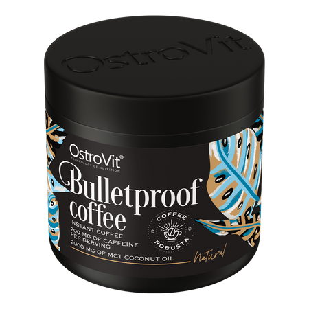 OstroVit Bulletproof Coffee es un café robusta natural, enriquecido con cafeína y aceite MCT de coco. Se trata de un preparado aromatizado de forma natural, creado para los amantes de las bebidas aromáticas que buscan una alternativa inusual a la clásica taza de pequeño negro.
