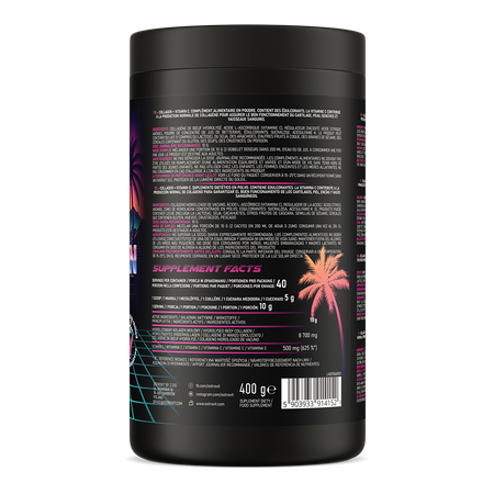 El suplemento dietético también contiene cantidades significativas de vitamina C, que es un micronutriente hidrosoluble que contribuye a la producción adecuada de colágeno para el funcionamiento óptimo de los vasos sanguíneos, los huesos, los cartílagos y las encías, así como de los dientes y la piel. Además, la vitamina C favorece el mantenimiento del metabolismo energético normal y contribuye a reducir la sensación de fatiga y cansancio, y además ayuda a mantener una función óptima del sistema inmunitario durante y después del ejercicio intenso.