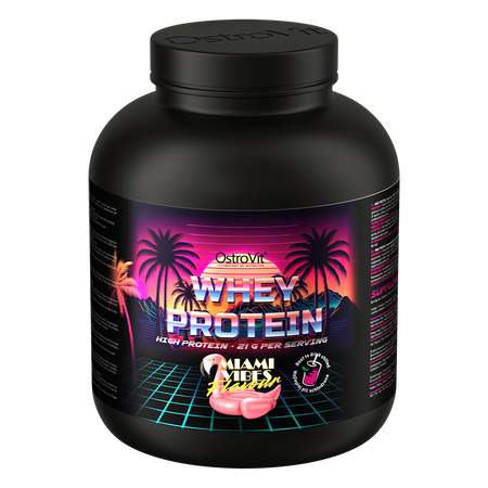 OstroVit Whey Protein es un suplemento dietético que contiene concentrado de proteína de suero (WPC) y es, por tanto, una valiosa fuente de proteínas. Se trata de una fórmula con un sabor único a Miami Vibes, disponible en forma de polvo, que se ha desarrollado para deportistas y personas con una mayor necesidad de proteínas.