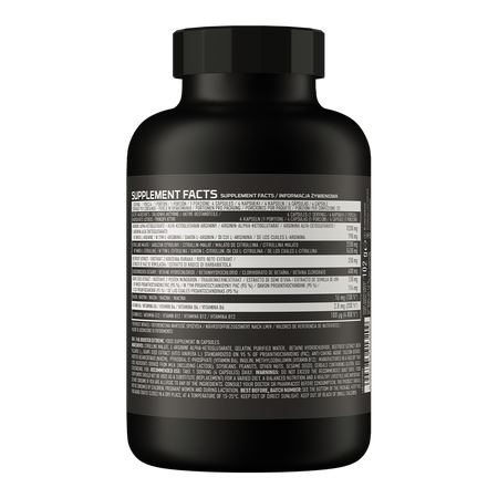 - Contiene hasta 8 sustancias activas diferentes - una ración del suplemento dietético aporta al organismo 1200 mg de L-arginina alfa-cetoglutarato, 2200 mg de citrulina malato, 250 mg de extracto de raíz de remolacha, 400 mg de hidrocloruro de betaína, 120 mg de extracto de semilla de uva, así como 16 mg de niacina, 2,8 mg de vitamina B6 y 100 ug de vitamina B12.