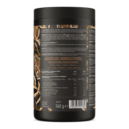 - Forma práctica - la fórmula está disponible en polvo para un suministro sin problemas del producto: basta con disolver una porción del café rico en proteínas en leche o agua y listo!