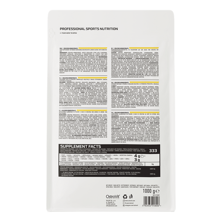 OstroVit utiliza monohidrato de creatina, es decir, la combinación de una molécula de creatina con una molécula de agua en una sola molécula - debido a que la creatina es un compuesto hidrófilo, se combina fácilmente con el agua y por lo tanto es una sustancia con una excelente biodisponibilidad. El monohidrato de creatina es la forma más simple de creatina en términos de su estructura, y al mismo tiempo el compuesto más popular entre los atletas - es ideal tanto para principiantes en estilos de vida activos como para profesionales, debido al hecho de que la creatina aumenta el rendimiento físico en el caso de ejercicios físicos sucesivos, cortos y muy intensos, y los efectos beneficiosos se producen cuando se consumen 3 g de creatina al día.