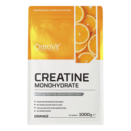 OstroVit utiliza monohidrato de creatina, es decir, la combinación de una molécula de creatina con una molécula de agua en una sola molécula - debido a que la creatina es un compuesto hidrófilo, se combina fácilmente con el agua y por lo tanto es una sustancia con una excelente biodisponibilidad. El monohidrato de creatina es la forma más simple de creatina en términos de su estructura, y al mismo tiempo el compuesto más popular entre los atletas - es ideal tanto para principiantes en estilos de vida activos como para profesionales, debido al hecho de que la creatina aumenta el rendimiento físico en el caso de ejercicios físicos sucesivos, cortos y muy intensos, y los efectos beneficiosos se producen cuando se consumen 3 g de creatina al día.