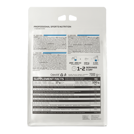 OstroVit Anabolic Gainer es un suplemento de carbohidratos y proteínas que también es una fuente de ingredientes valiosos como la taurina y la creatina. Es un suplemento dietético en polvo, disponible en tres deliciosos sabores, que no contiene azúcares añadidos. Es un producto diseñado para deportistas y personas físicamente activas que desean complementar su dieta con ingredientes valiosos.