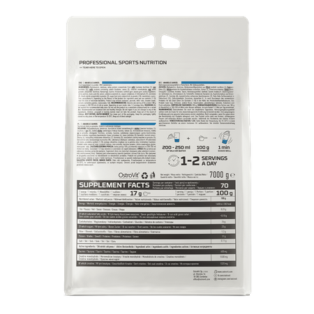 OstroVit Anabolic Gainer es un suplemento de carbohidratos y proteínas que también es una fuente de ingredientes valiosos como la taurina y la creatina. Es un suplemento dietético en polvo, disponible en tres deliciosos sabores, que no contiene azúcares añadidos. Es un producto diseñado para deportistas y personas físicamente activas que desean complementar su dieta con ingredientes valiosos.