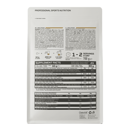 - Fuente de proteínas de alta calidad - una ración del suplemento dietético aporta al organismo 28,3 g de un complejo de ocho proteínas animales, que contiene 4,7 g de BCAA y 10,8 g de EAA.