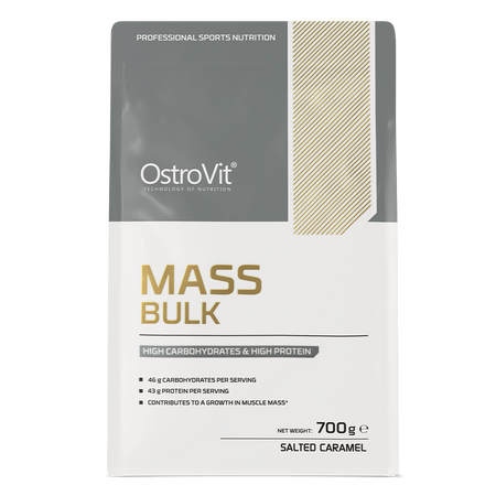 OstroVit Mass Bulk es un suplemento dietético de alta calidad que proporciona una fuente de carbohidratos y proteínas. Se trata de una fórmula disponible en polvo con un delicioso sabor a caramelo salado que se deshace en la boca. Un producto diseñado para deportistas y personas físicamente activas que desean complementar su dieta diaria con valiosos macronutrientes.