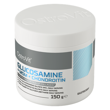 OstroVit Glucosamina + MSM + Condroitina es un complemento alimenticio de alta calidad que proporciona una fuente de glucosamina, condroitina, MSM, así como ácido hialurónico y vitamina C. Se trata de un preparado con delicioso sabor a frambuesa, disponible en polvo, que no contiene azúcares añadidos. Es un producto diseñado para deportistas y personas con una mayor necesidad de compuestos valiosos.