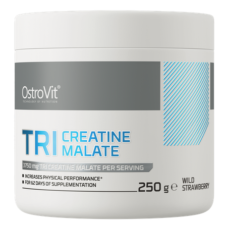 OstroVit utiliza creatina malato, una combinación 1:3 de la molécula de creatina con ácido málico. Es una de las formas más solubles del compuesto, que se distingue por su gran estabilidad y resistencia a las enzimas gástricas, así como por su excelente biodisponibilidad en el cuerpo humano. Creatina malato contribuye significativamente menos que el monohidrato a la retención de agua en el organismo, lo que lo hace muy popular entre deportistas de diversas disciplinas.