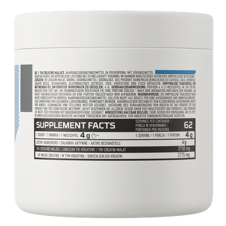 OstroVit Creatina Malato es un suplemento dietético de alta calidad que contiene creatina en forma de malato. Se trata de un preparado con un delicioso sabor afrutado, disponible en un cómodo formato en polvo que no contiene azúcares añadidos. Es un producto diseñado para deportistas y personas físicamente activas que desean complementar su dieta con valiosos compuestos.