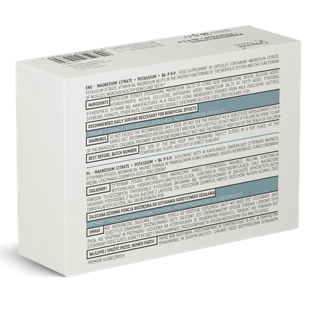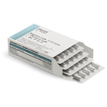 OstroVit Pharma Citrato de Magnesio + Potasio + B6 P-5-P es un complemento alimenticio de alta calidad que proporciona una fuente de magnesio, potasio y vitamina B6. Se trata de un producto de la línea elite de OstroVit Pharma, disponible en forma de cápsulas fáciles de tragar. Es un producto creado para consumidores conscientes que desean complementar su dieta diaria con valiosos micronutrientes.