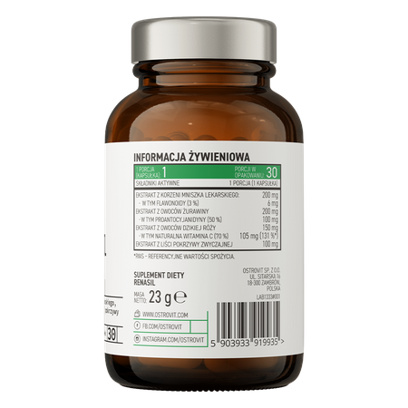 OstroVit Pharma Renasil es un suplemento dietético de alta calidad que constituye una fuente de valiosos extractos vegetales: de diente de león, arándano rojo, rosa silvestre y ortiga común. Es un preparado de la línea élite OstroVit Pharma, disponible en forma de cápsulas fáciles de tragar. Es un producto creado para consumidores conscientes que desean complementar su dieta diaria con compuestos valiosos.