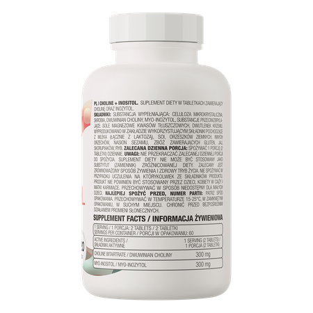OstroVit Colina + Inositol 300 mg es un suplemento dietético de alta calidad que contiene dos compuestos valiosos: colina e inositol. Se trata de un preparado disponible en forma de comprimidos fáciles de tragar, creado pensando en aquellas personas que desean complementar su dieta diaria con ingredientes valiosos.