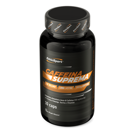 EthicSport Caffeina Suprema es un complemento alimenticio con una fórmula innovadora que constituye una fuente de sustancias valiosas, como cafeína (en forma libre y microencapsulada), taurina, teanina, vitaminas y extracto de galanga. Es un producto destinado a todas las personas que practican deporte, especialmente aquellos intensos y de larga duración.