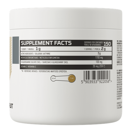 OstroVit MSM Plus es un complemento alimenticio que proporciona una fuente de metilsulfonilmetano, también conocido como azufre orgánico. Además, la fórmula se ha enriquecido con valiosos ingredientes como la vitamina C y la glucosamina. Este producto de alta calidad está disponible en forma de polvo y ha sido desarrollado para atletas y personas que desean complementar su dieta diaria con valiosos compuestos.
