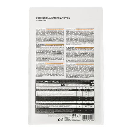 - Fuente de proteínas de alta calidad - una ración del suplemento dietético aporta al organismo 21 g de proteínas procedentes del concentrado de proteína de suero de leche.