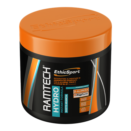 EthicSport Ramtech® Hydro es un suplemento dietético en forma de polvo con un refrescante sabor a naranja y limón. El producto ha sido desarrollado para deportistas y personas que entrenan intensamente y desean complementar su dieta con aminoácidos BCAA, beta-alanina y determinadas vitaminas y minerales.